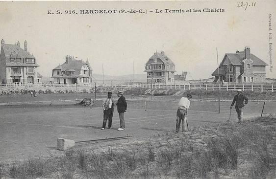 Dès 1908, les tennis d’Hardelot sont construits entre une vingtaine de villas en bord de plage. C'est l'architecte Louis Marie Cordonnier, ami de John Whitley, qui réalise ces vastes et singulières villas qui caractérisent encore aujourd'hui Hardelot. Les cartes postales datées de 1911 témoignent de cette nouvelle station balnéaire, centre mondain des sports.