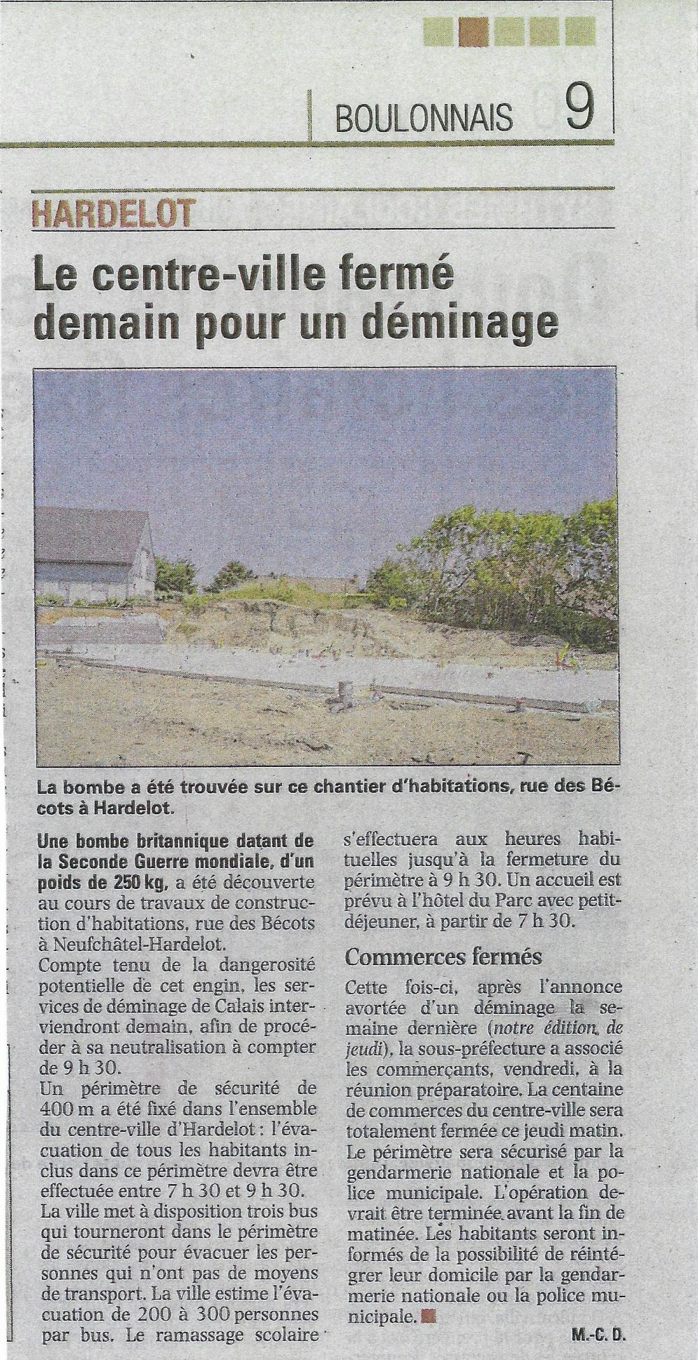 En avril 1942 évacuation totale d’Hardelot et dynamitages en série d’une quarantaine de villas qui gênaient l’artillerie allemande. Des prisonniers juifs du camp de Dannes construisent les lignes de défense et les voies d’accès aux blockhaus. « L’année se termine sur des ruines. Aussitôt l’évacuation terminée, la dynamite fait sauter quarante villas. Les autres deviennent bientôt des squelettes, les ouvriers prenant toutes les boiseries pour se chauffer. Toutes les conduites d’eau, le plomb, le cuivre, le zinc, tout est enlevé. Les arbres qui bordent la mer sont abattus ou coupés à un mètre du sol. Autour de la Chapelle et un peu partout l’on construit des blockhaus. Les routes sont bloquées par des réseaux de fil de fer barbelé et les dunes sont semées de mines. Que restera-t-il de cette paroisse si belle avec sa forêt de pins, si éblouissante avec ses constructions neuves ? »
