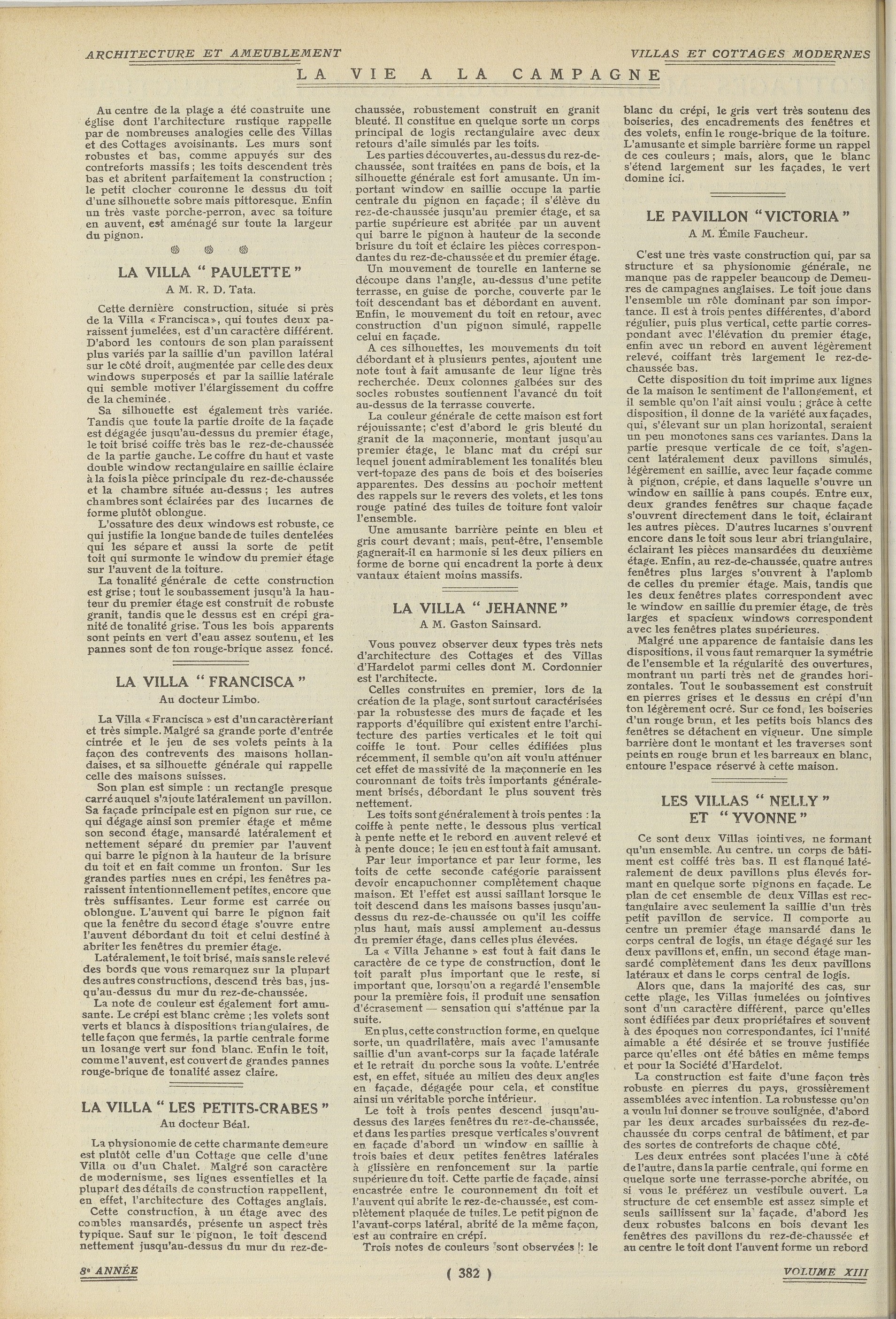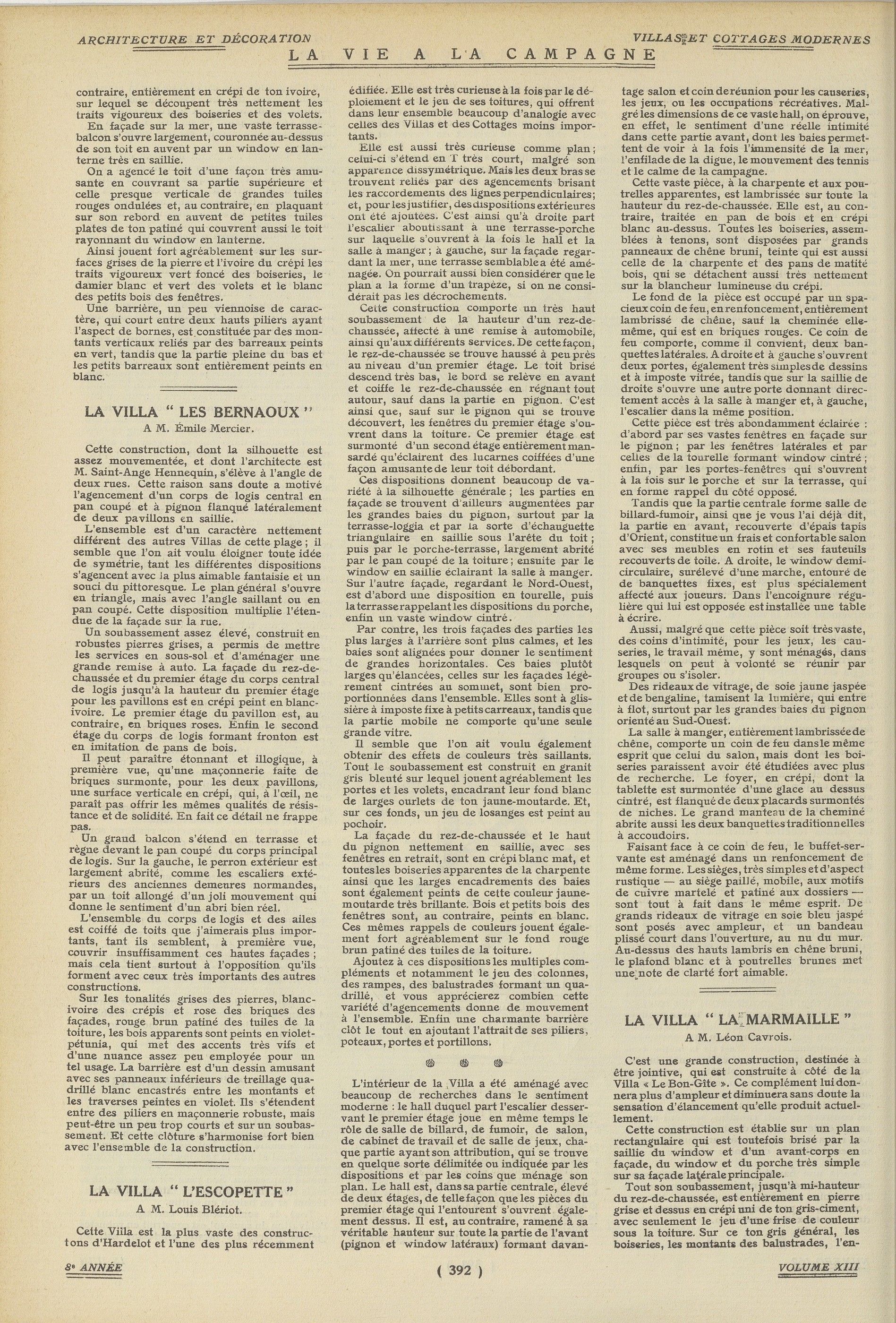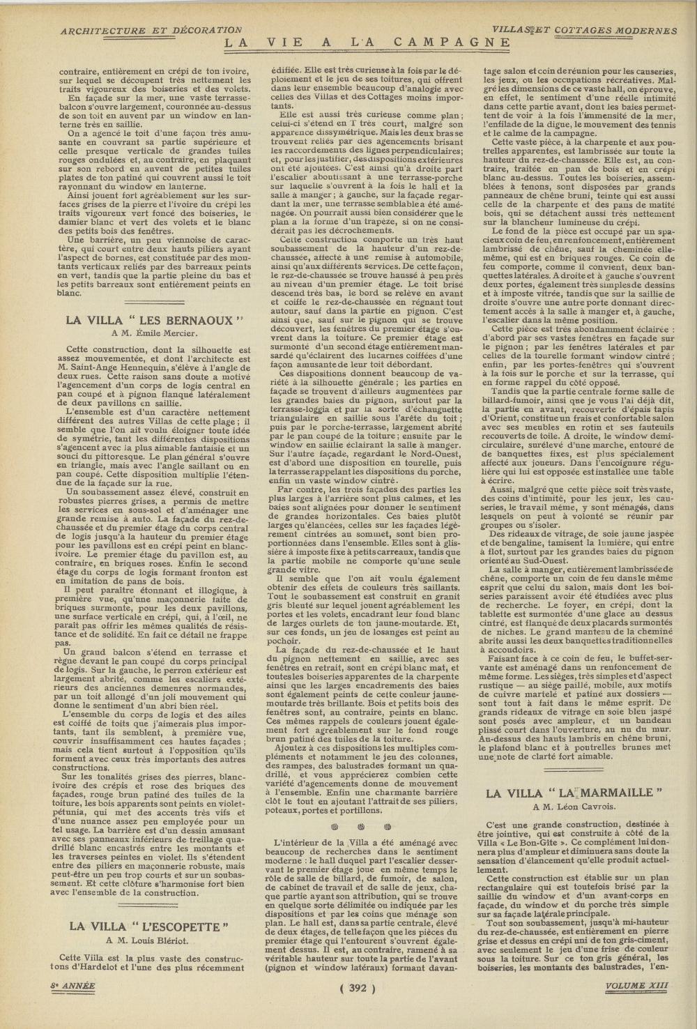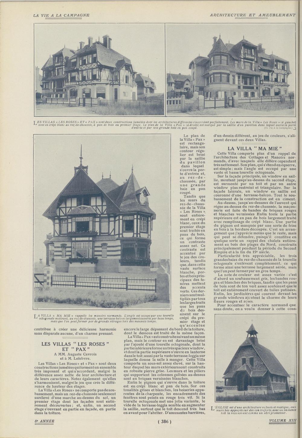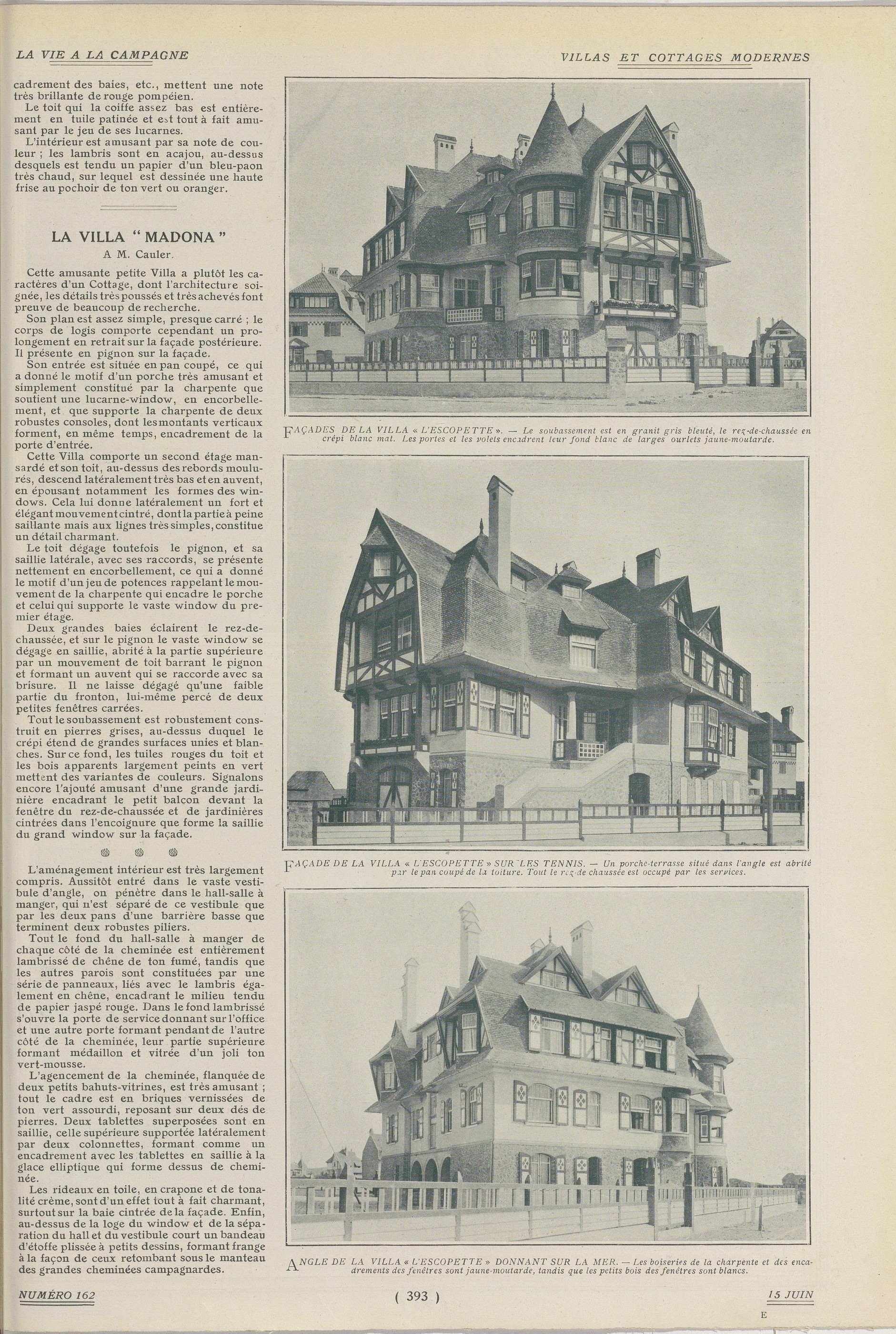 La revue "La Vie à la Campagne du 15 juin 1913 consacre quelques pages à Hardelot-Plage et ses villas du bord de mer. Quelques clichés, comme on disait à l’époque, illustrent l’article et nous montrent ce qu’était notre toute jeune station juste avant la première guerre mondiale. La revue nous fait entrer dans quelques villas pour y découvrir l’agencement et la décoration.