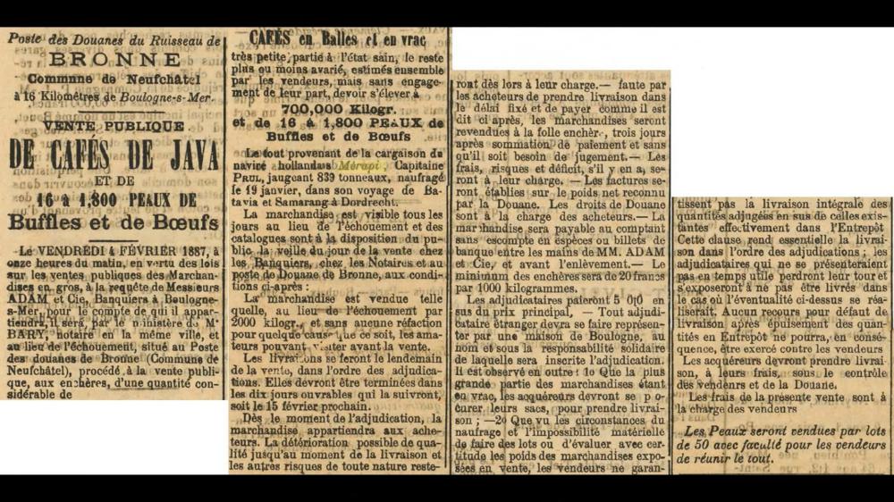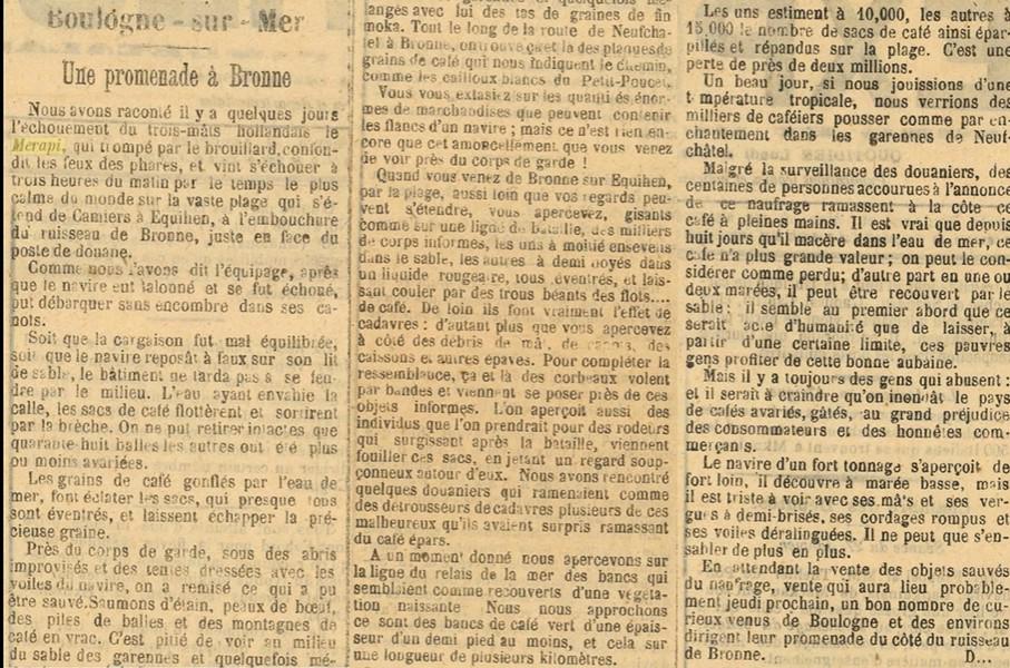 Les douaniers interviennent mais ne peuvent préserver toute la cargaison et le café récupéré par les habitants fait bientôt l’objet d’un trafic. La chronique judiciaire de l’époque se fait l’écho de ce commerce illégal.
