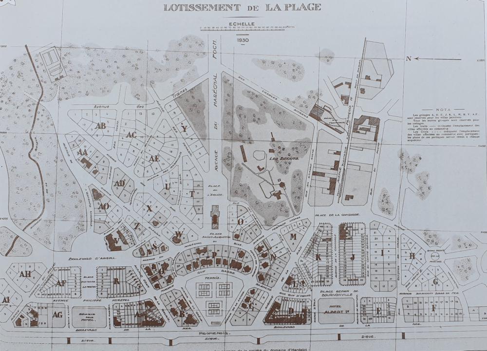 En 1930, le projet de Whitley et Cordonnier a pris corps, le plan de la station -Lotissement de la Plage- a légèrement évolué. Hardelot a pris son essor comme le montre la revue « Hardelot 1931 », éditée par la société du Domaine d’Hardelot.