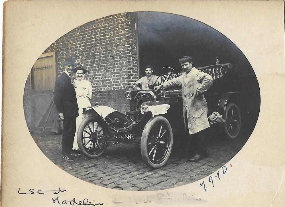 Louis-Stanislas Cordonnier et Madeleine en 1910 - réparation de leur automobile