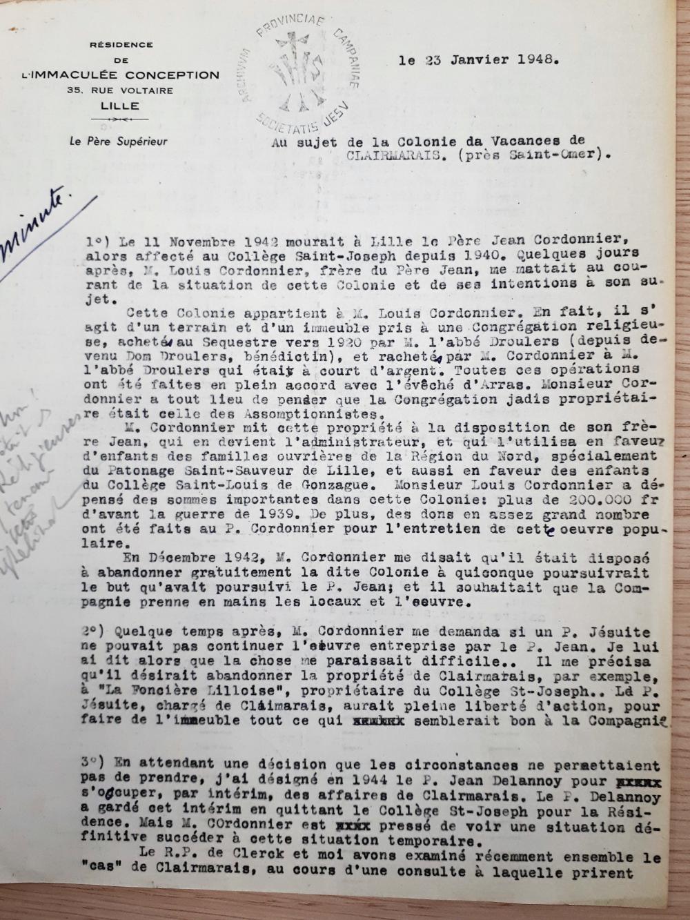 Son intervention au dossier de la colonie de vacances de Clairmarais en est un exemple parmi d’autres. Voir les deux pièces jointes. »