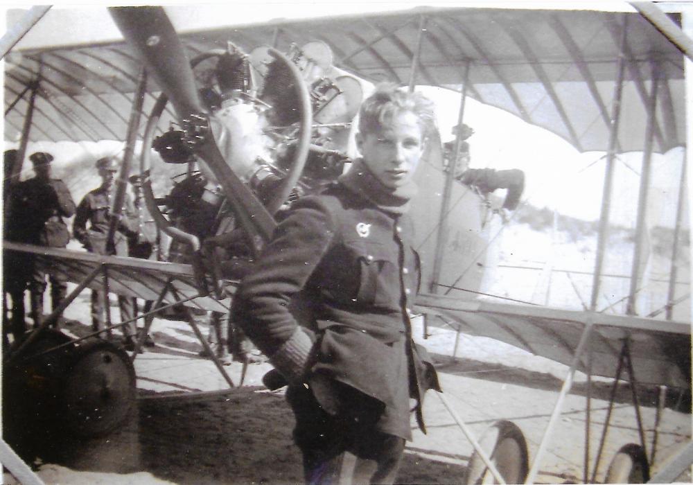 BEAUMONT et un passager, l’hélice va bientôt tourner…On aperçoit à gauche le hangar.