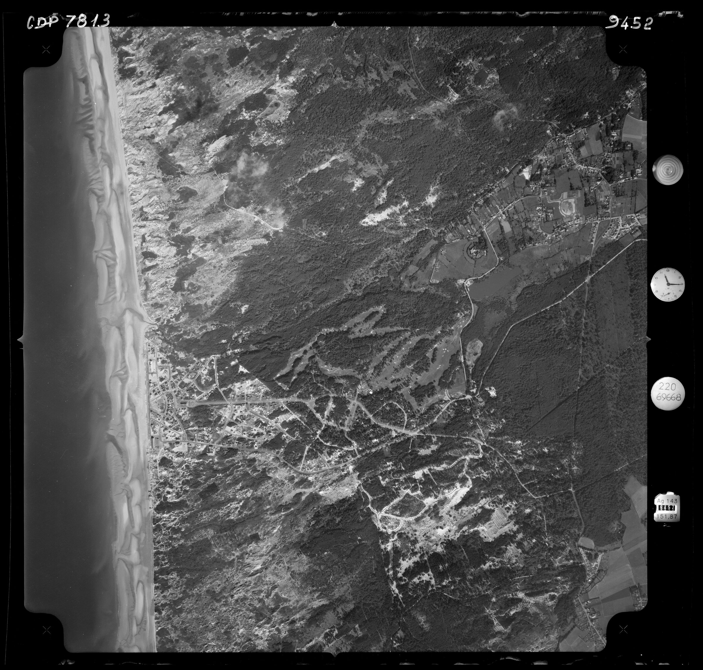 Photo 7 : 31 mai 1963, au droit des dunes et du Mont St Frieux, au nord la station d’Hardelot avec, après la forêt vers Neufchâtel, le damier des champs …