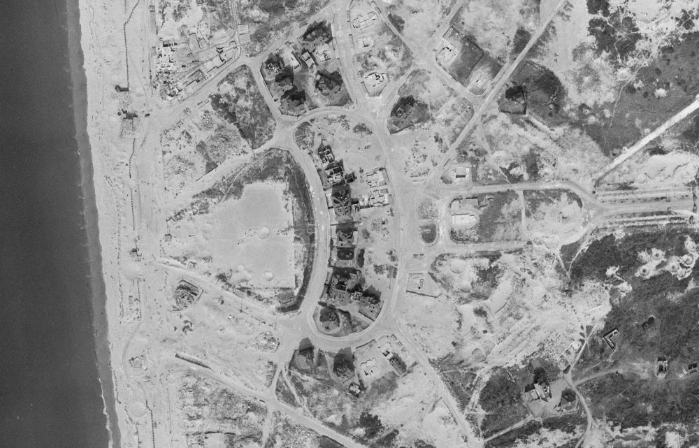 Photo 4 : sur ce cliché du 5 octobre 1947 on peut distinguer le plan caractéristique de la station de Whiteley  encore bien abîmée notamment l’ex-place des courts de tennis, l’avenue Foch…