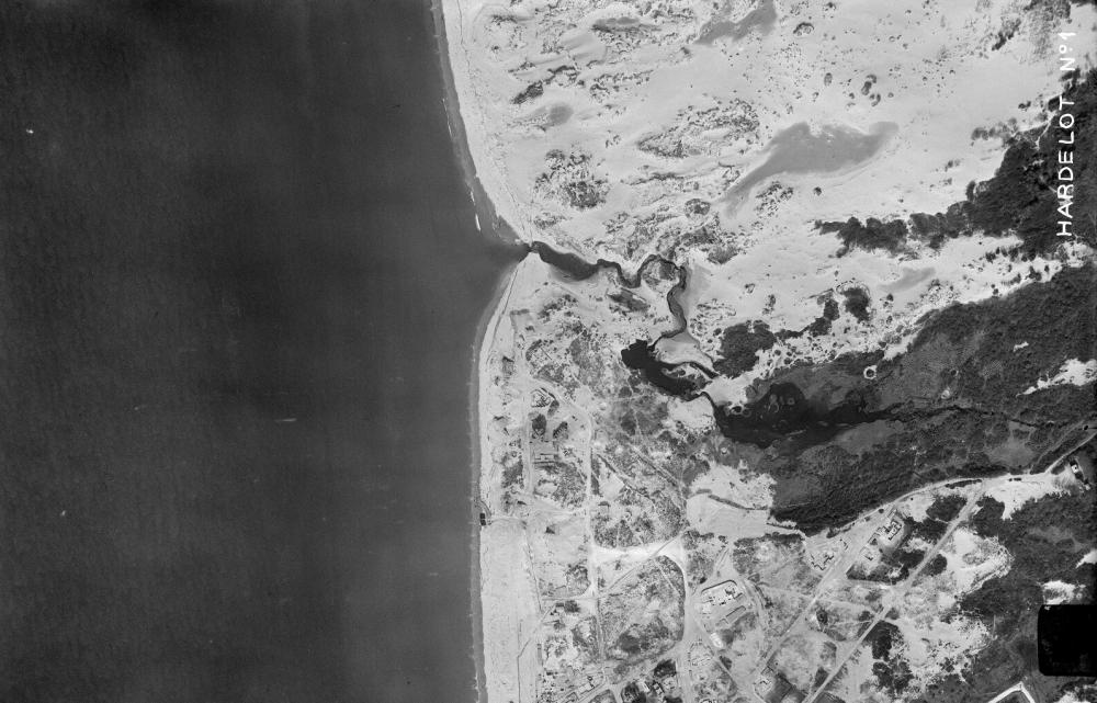 Photo 1 : pris le 19 avril 1929 ce cliché sur plaque de verre montre la station d’Hardelot-Plage telle qu’elle a été conçue par John Whitley et Louis-Marie Cordonnier. On distingue bien, l’embouchure de la Becque , l’actuelle place Louis Marie Cordonnier, l’avenue François 1er et l’avenue princesse Louise. A cette époque Hardelot comporte encore très peu d’habitations
