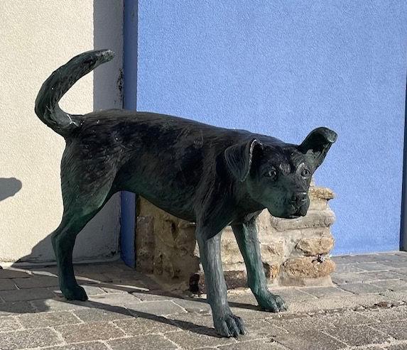 Le chien qui fait pipi situé devant la villa l’Escopette