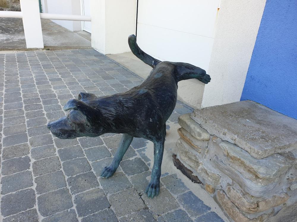 A Hardelot, ce « Zinneke » placé sur le site historique de l’ancienne villa Blériot souligne la grandeur du lieu en même temps que sa fragilité, il est un clin d’œil à la diversité des promeneurs et à la communauté belge… Dérision aussi vis-à-vis de la promenade de la digue située à quelques mètres de là et interdite aux chiens sans laisse !