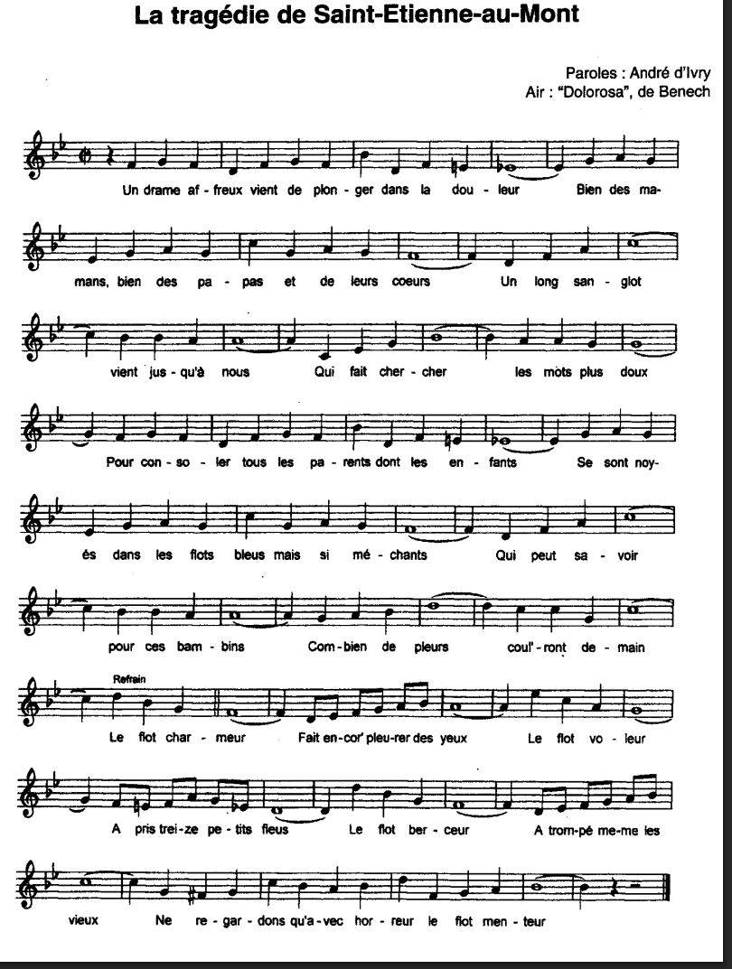 -  Nadine GERVAIS : Partition de « La tragédie de Saint-Etienne-au-Mont » d’André d’Ivry -Benech