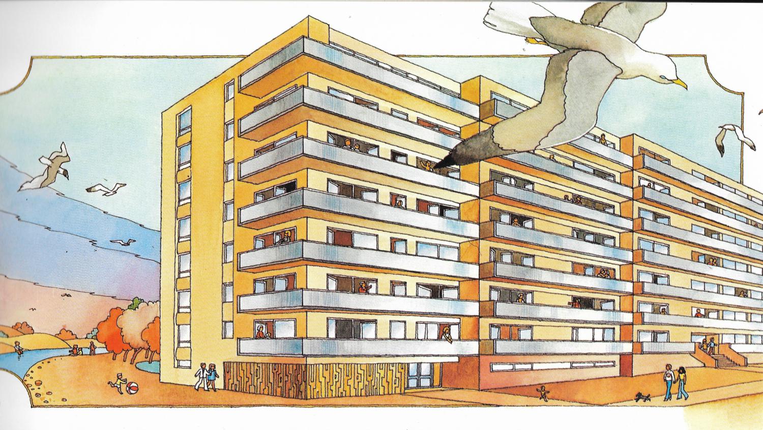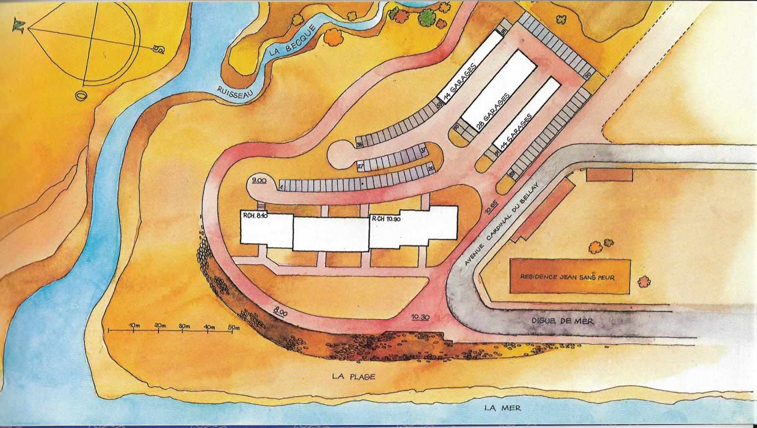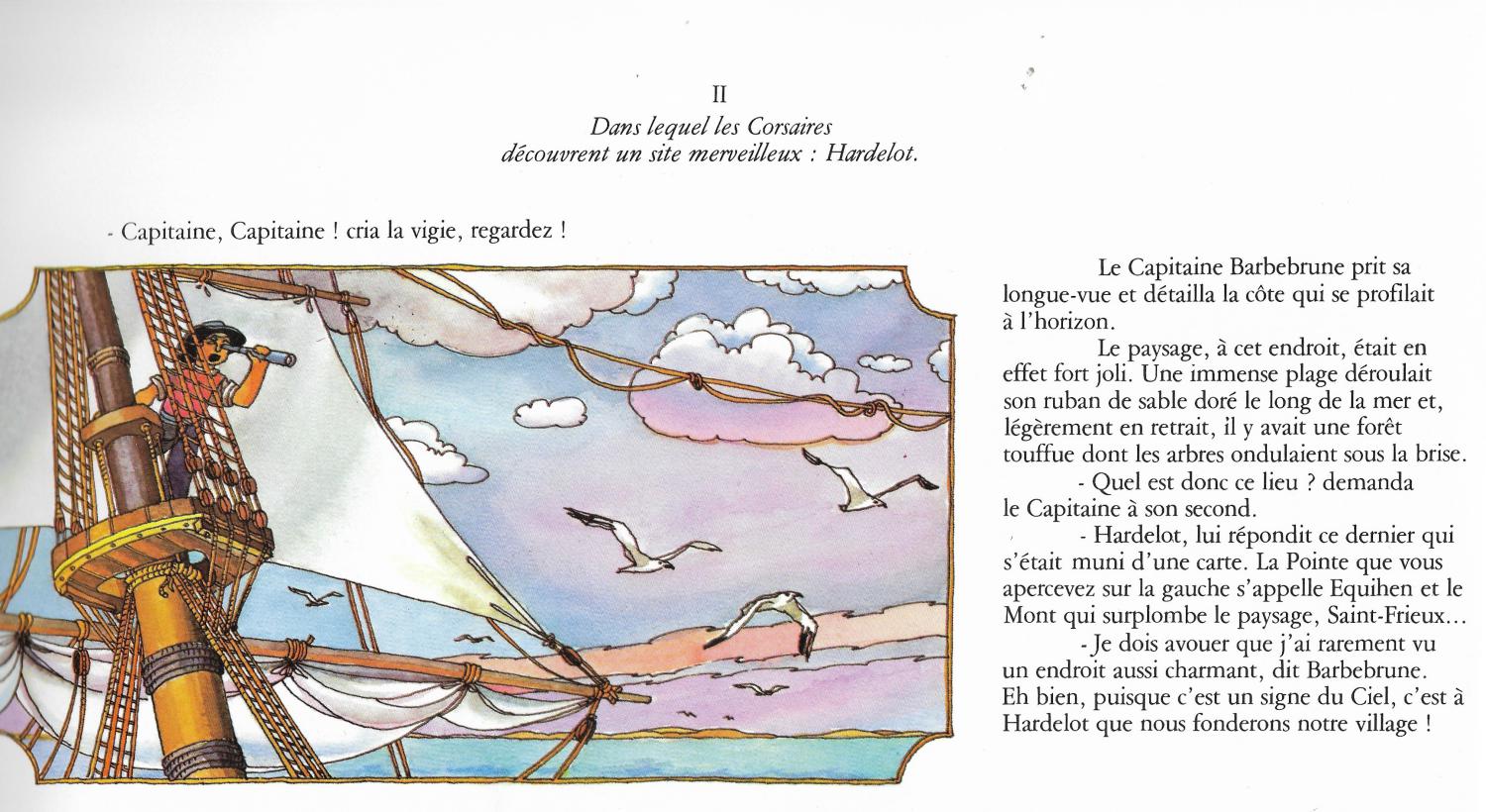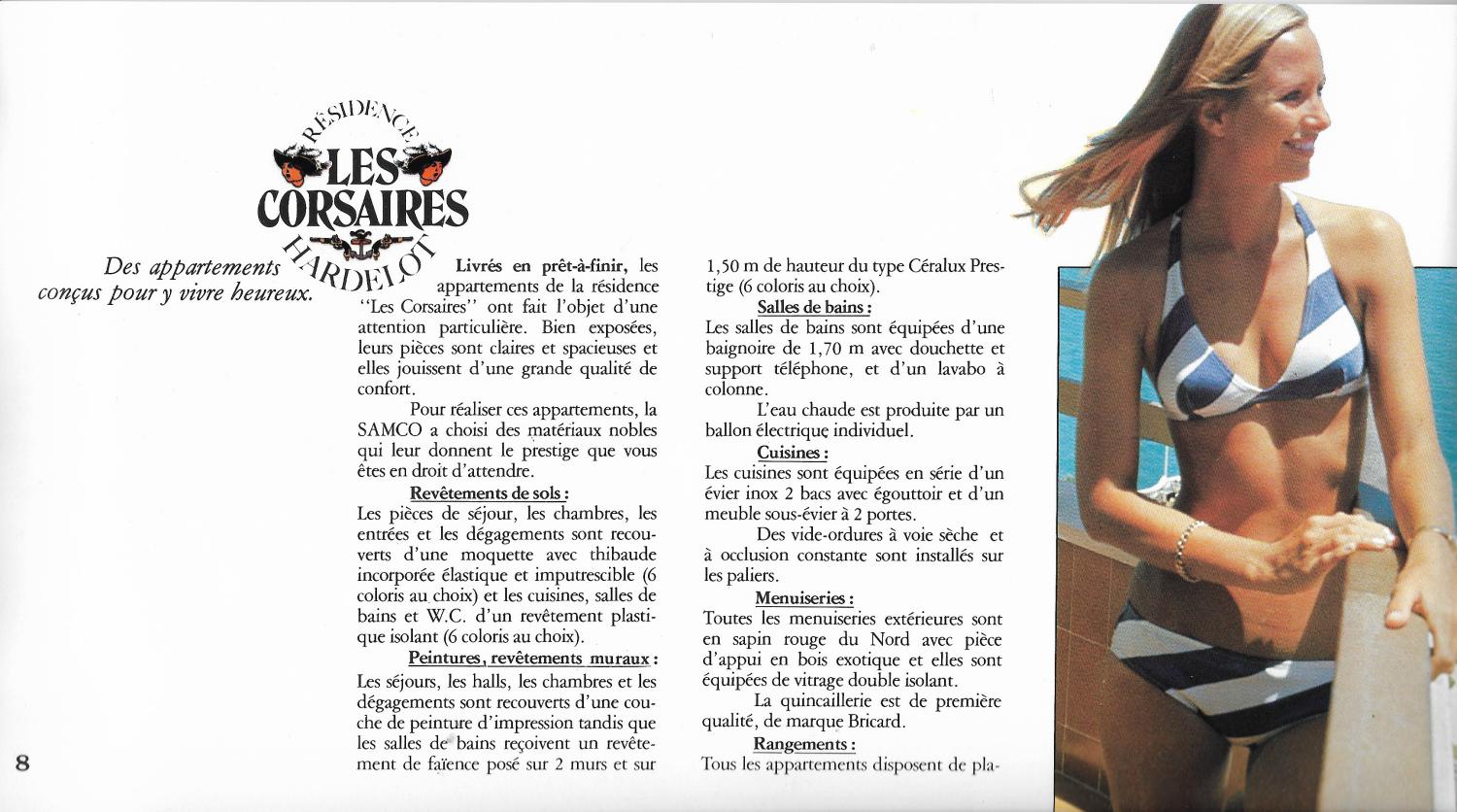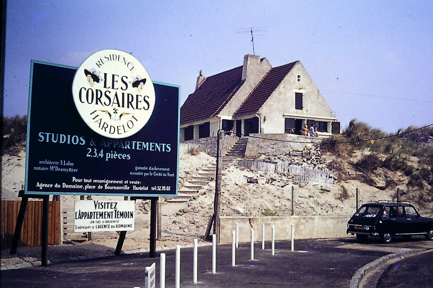 La plaquette de commercialisation des appartements est d’un genre particulier, elle fait appel à l’histoire maritime et met en scène l’équipage d’un bateau corsaire qui dans sa course découvre le site magnifique de la plage d’Hardelot où la mer a la limpidité d’un diamant … Les flibustiers séduits par Hardelot décident de s’y établir…Quelques centaines d’années plus tard une résidence est construite sur l’emplacement du village corsaire…